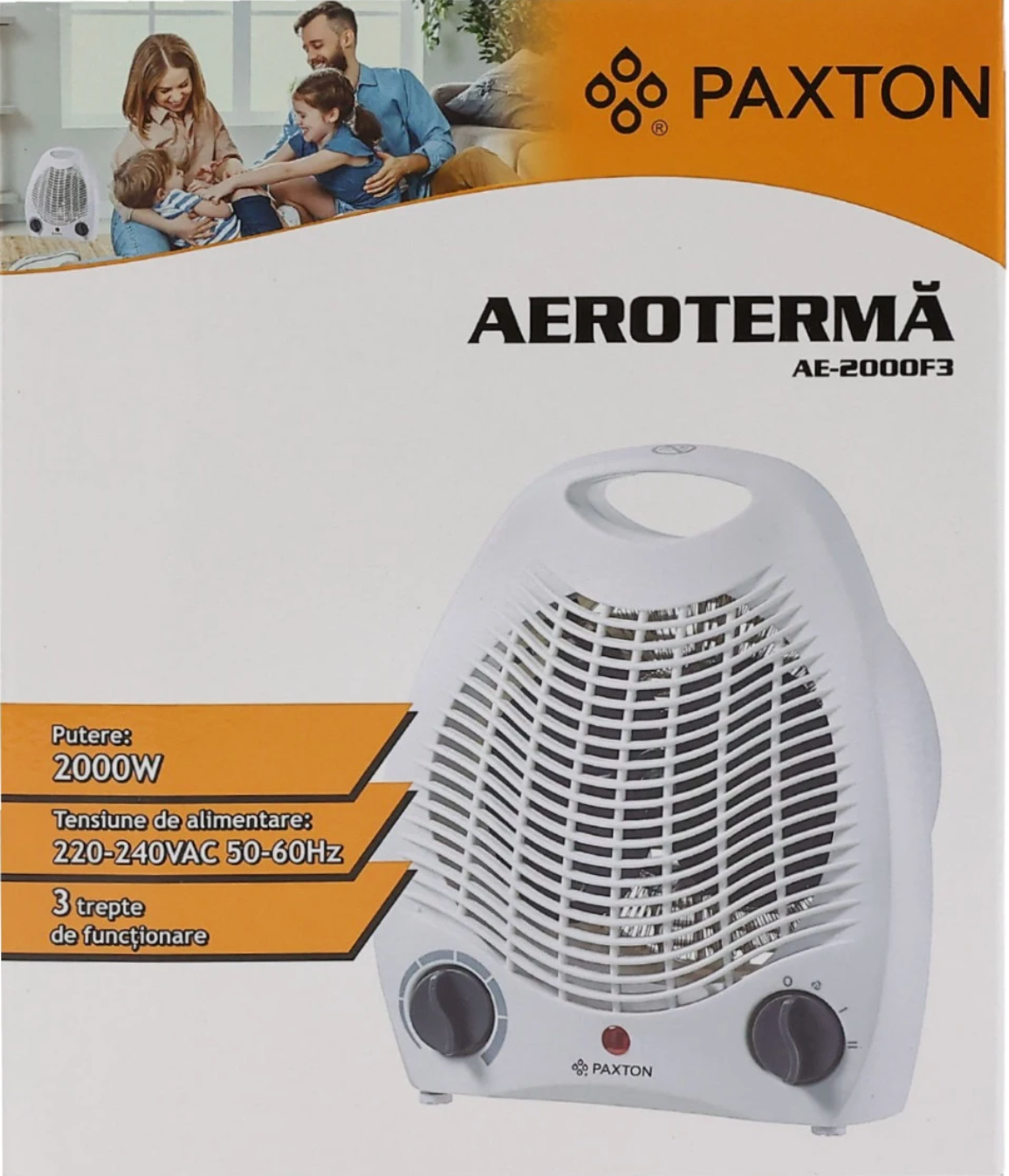 Aeroterma aer cald, rece, electrica, Paxton, 3 trepte putere, 2000W, termostat, mod ventilare, compact, usor de mutat, mica, 217 x 132 x 257 mm, 230 V