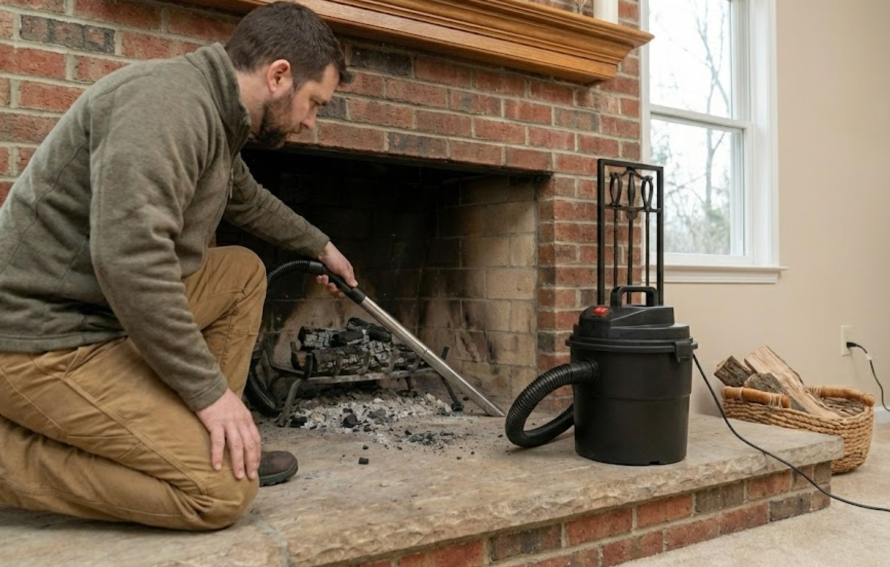 Porneste aspiratorul si treci treptat peste zona cu cenusa rece;