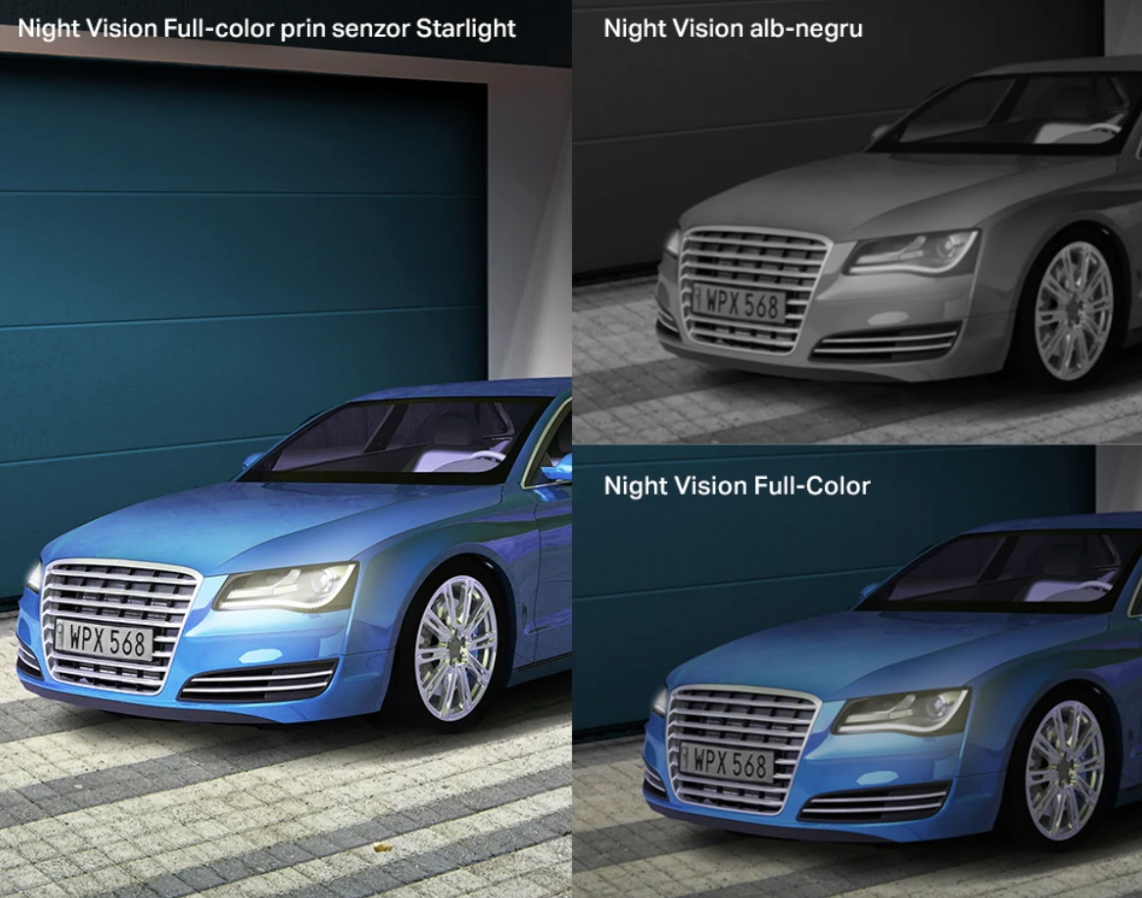 Viziune nocturna IR pana la ~29.9 m si optiune full-color;