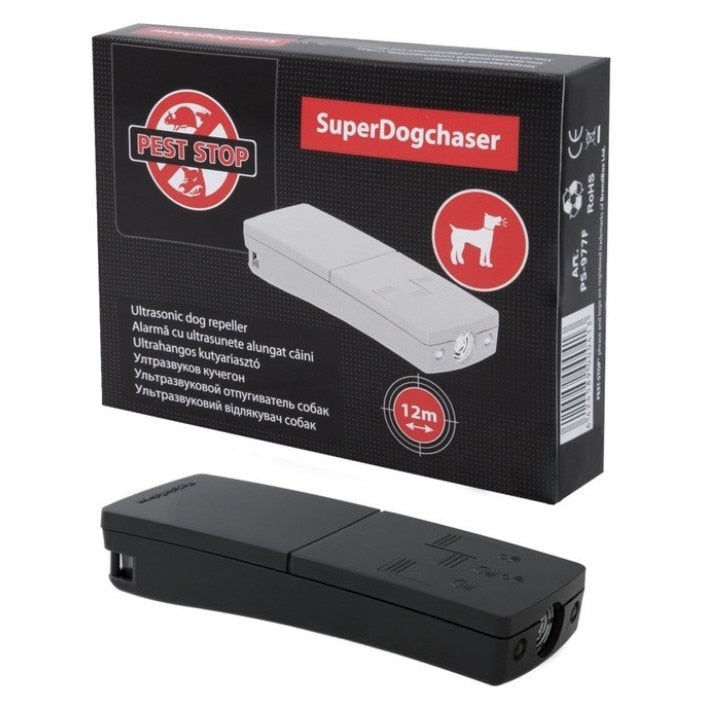Super DogChaser® este un dispozitiv destinat indepartarii cainilor agresivi sau nedoriti, bazat pe emisii de ultrasunete si semnale optice. Conceput ca o evolutie a modelului DogChaser, acesta combina sunetul inaudibil pentru oameni cu flash-uri luminoase puternice pentru a descuraja apropierea animalelor.